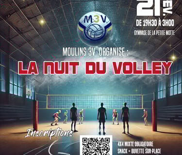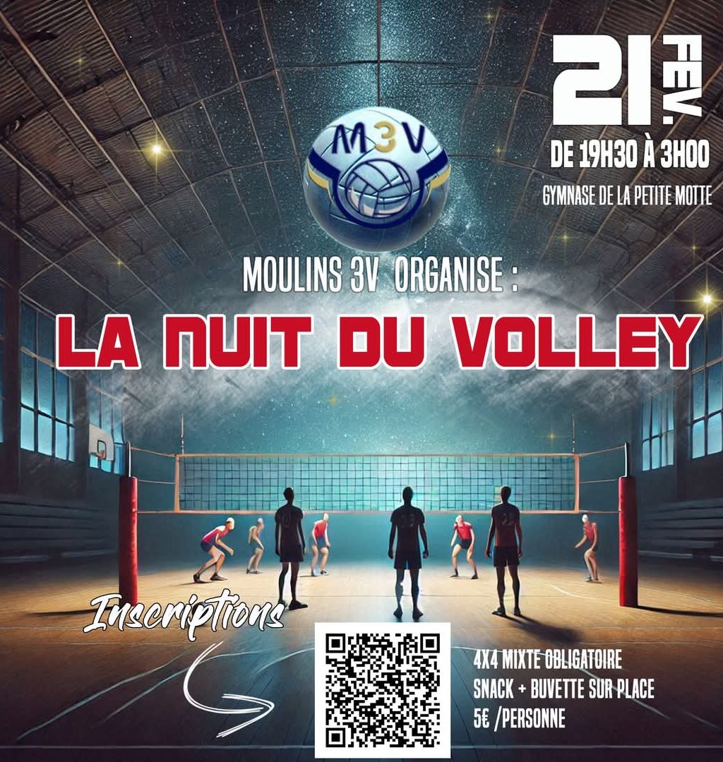 Après le succès des deux premières éditions, le club organise sa troisième Nuit du Volley. Un tournoi qui se joue de 19h30 à 03h00 du matin !!!! Limité à 12 équipes. Snack et buvette sur place.